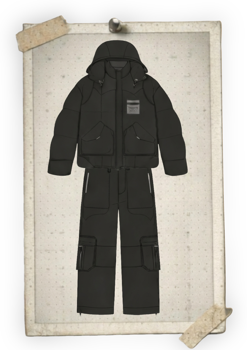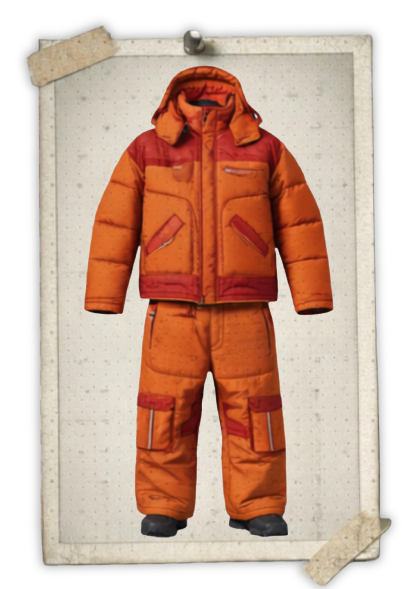 High-performance insulated jacket and pants to keep warm in extreme cold.