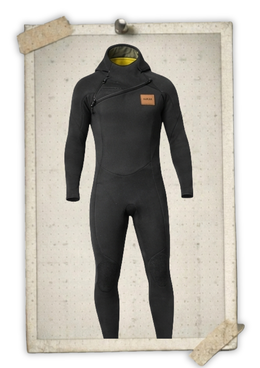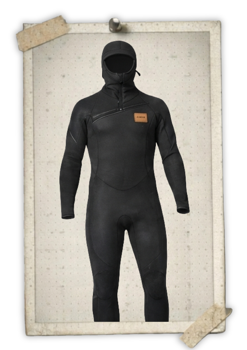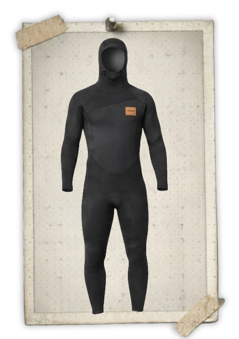 5/4mm wetsuit with built-in hood for frigid waters (45-55°F)