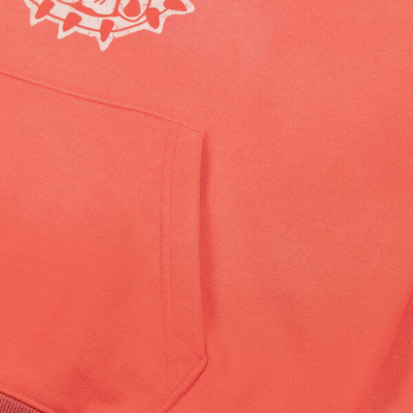 The Dead Atlantic Chapter 1 hoodie focuses on shape and feel. The overall silhouette of the Bulldog Hoodie is slightly cropped and oversized with short raw edges on the cuffs and no drawstring on the hood. The sleeves feature a reverse self stripe to give it an iconic twist that is uniquely Dead Atlantic. The bulldog graphic is inspired by retro collegiate sports logos.