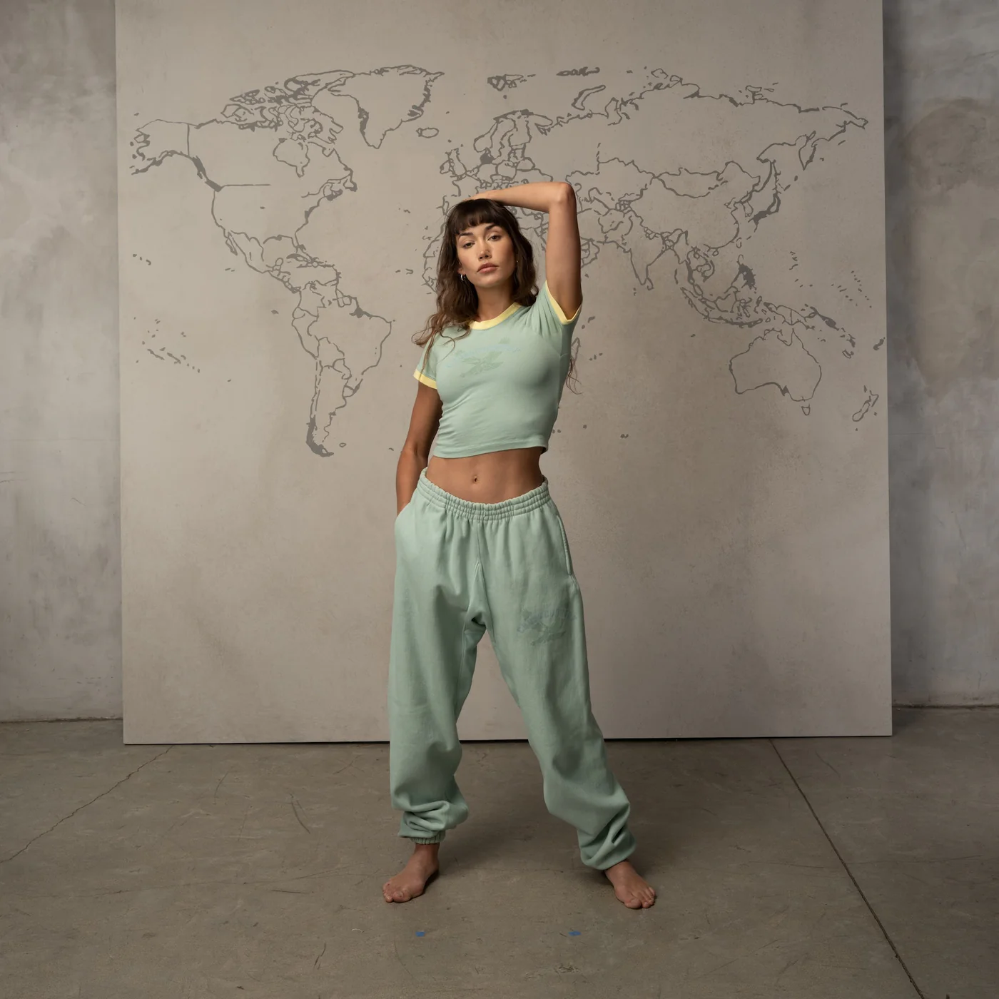 Our Chapter 1 Sweatpants focus on the comfort and shape of a classic lifestyle jogger. There is a unique gusset that allows for comfortable mobility with heavyweight ring spun French Terry. Each one of these garments undergoes a unique wash and dye process, and graphic fading. Each garment has its own characteristics and that is the intention.