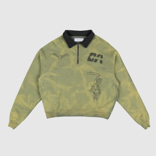 • Collared 1/4 zip made with heavy weight ring spun french Terry