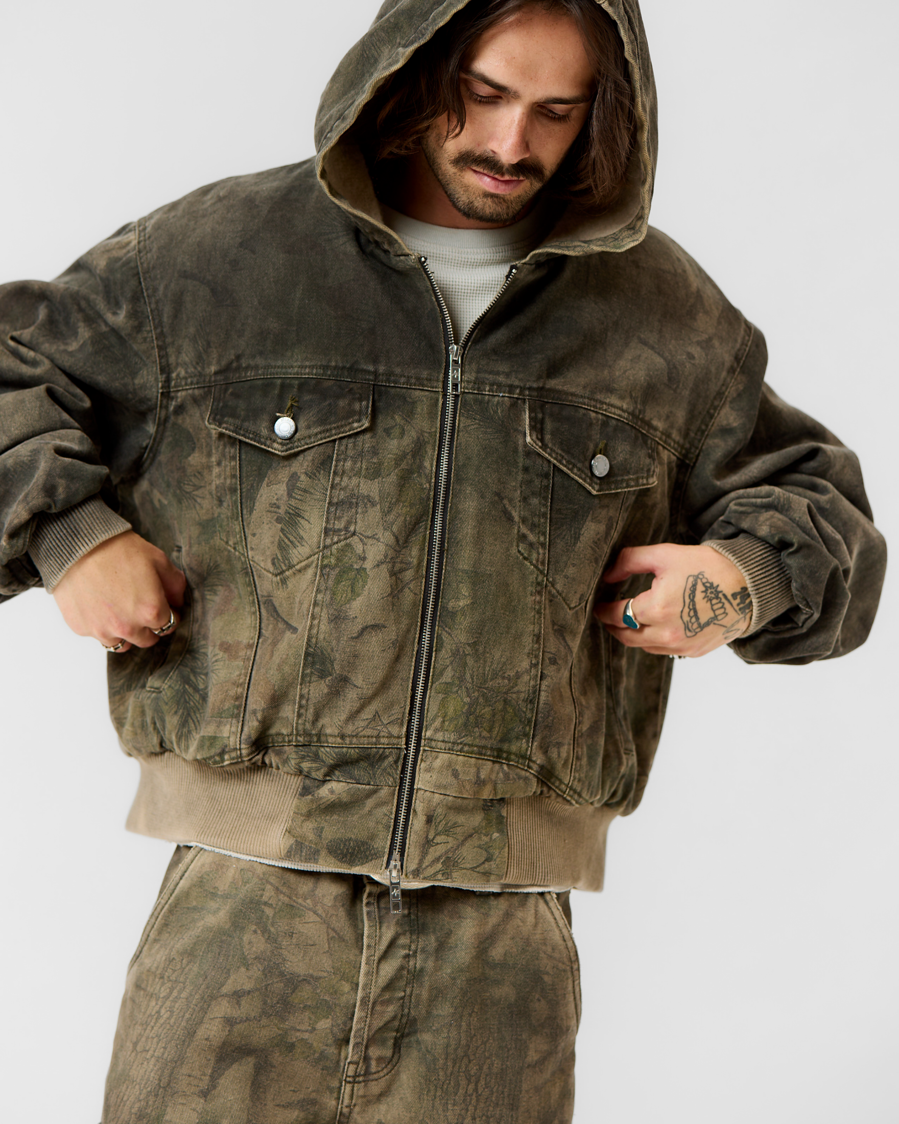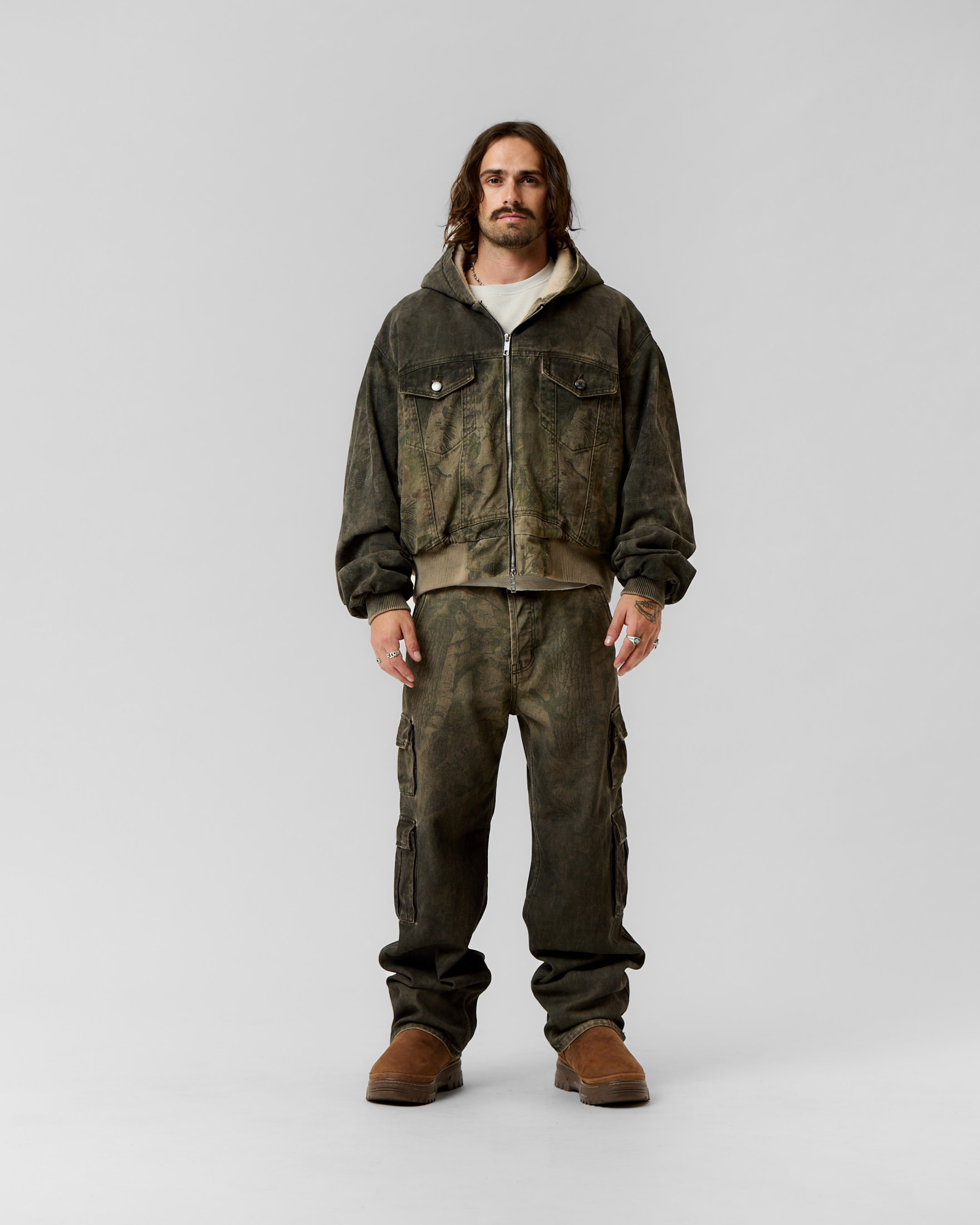 Montana is a special place for all of us. We created a custom one of one DA camo and printed on our 14.5 oz denim. The lining is insulated with 100% cotton. This piece comes cropped intentionally. Feel free to size up for longer length.